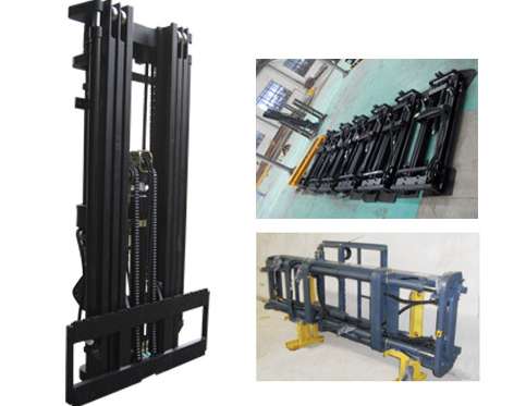 В качестве грузозахватного устройства могут применяться вилочный захват, ковш, грузовая стрела, прижимы, захваты.